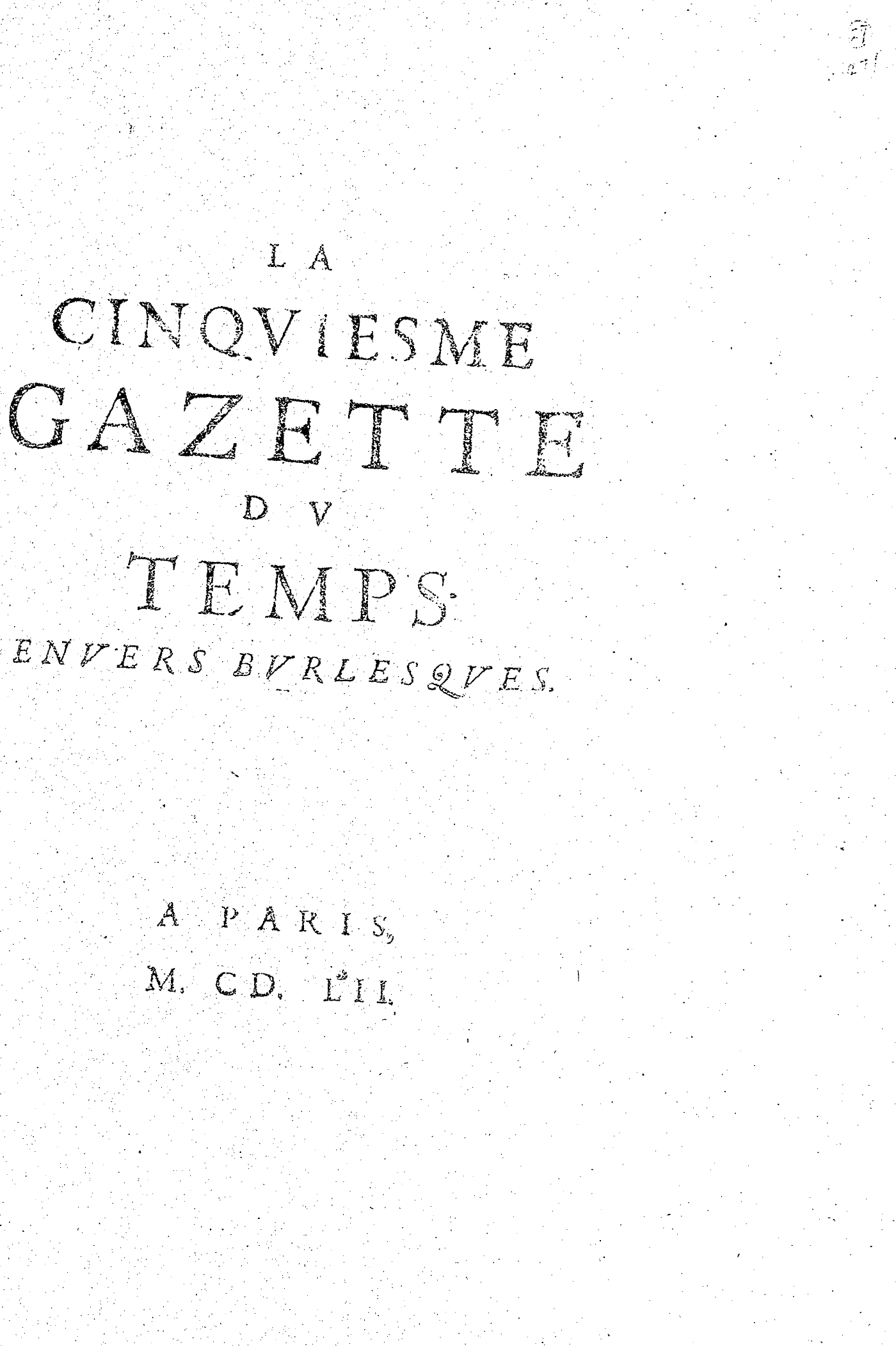 LA CINQVIESME GAZETTE DV TEMPS. EN VERS BVRLESQVES.
