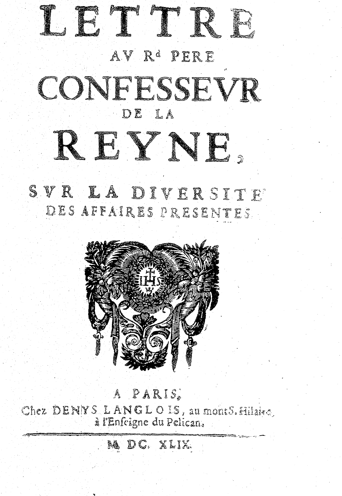 LETTRE AV Rd PERE CONFESSEVR DE LA REYNE, SVR LA DIVERSITE DES AFFAIRES PRESENTES
