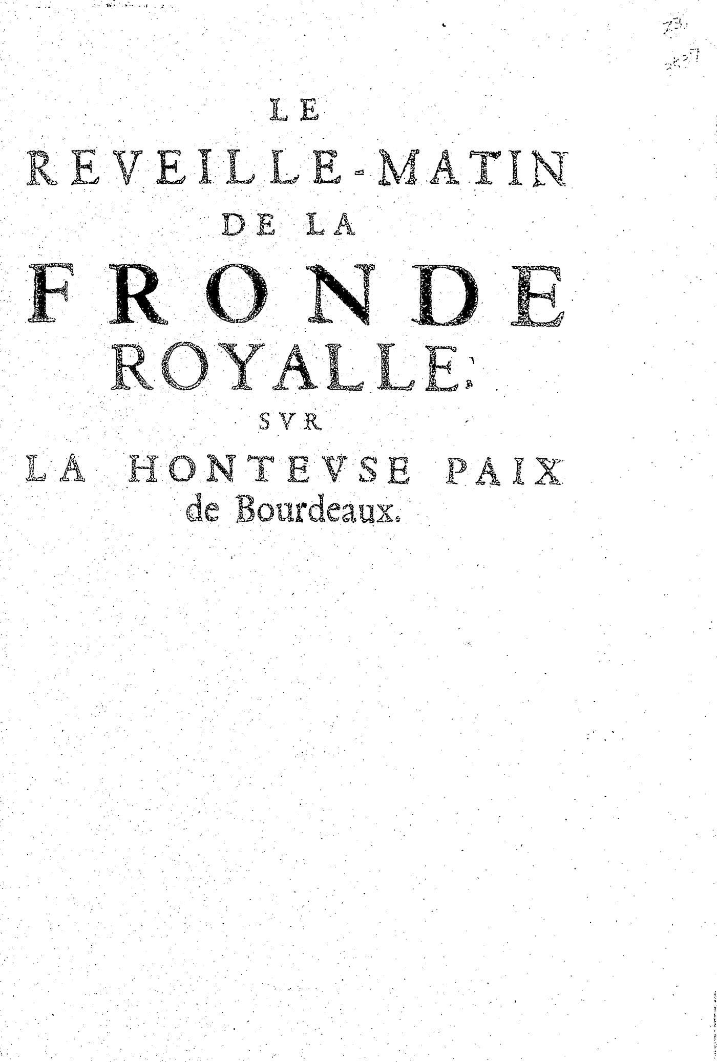 LE REVEILLE-MATIN DE LA FRONDE ROYALLE, SVR LA HONTEVSE PAIX de Bourdeaux.