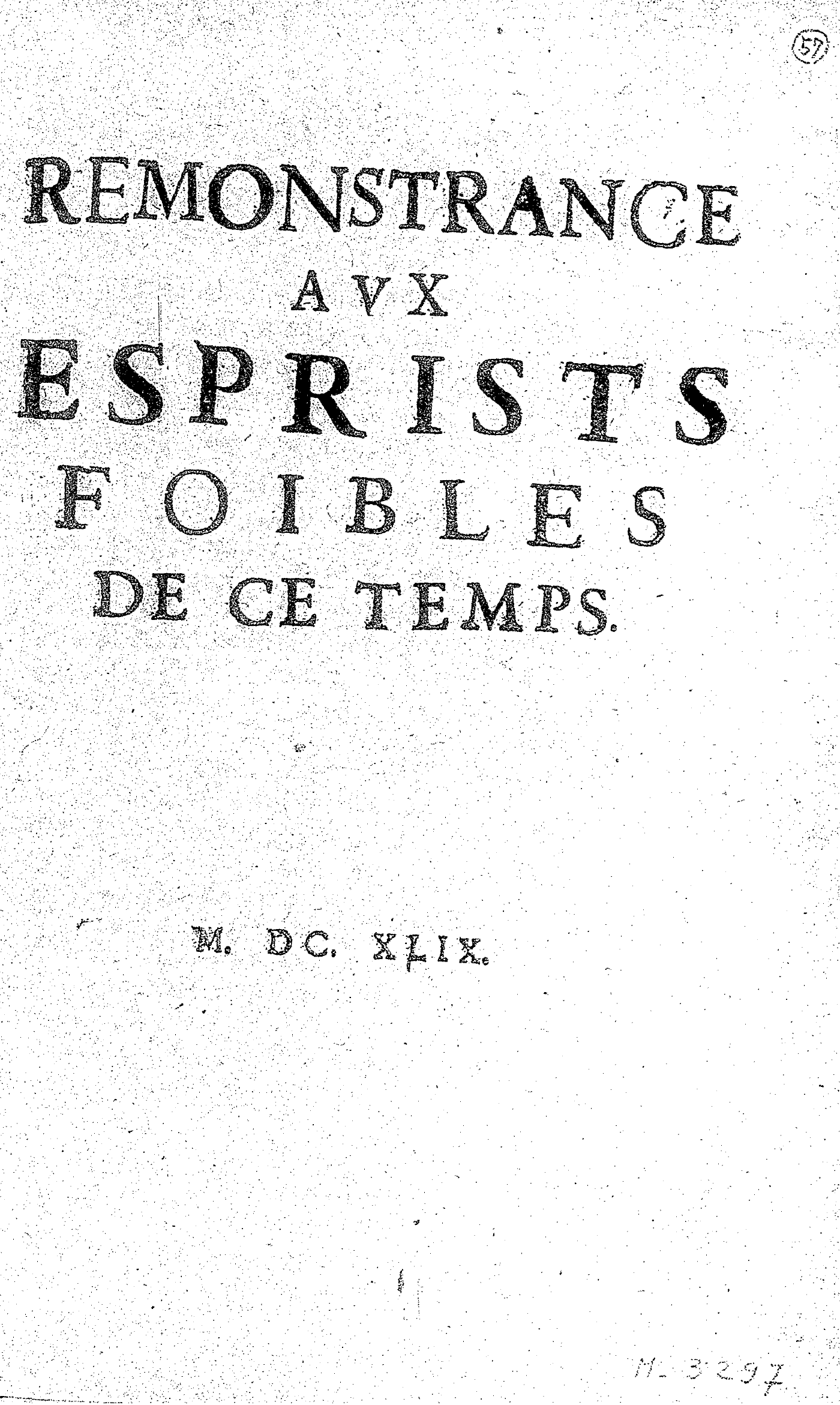 REMONSTRANCE AVX ESPRISTS FOIBLES DE CE TEMPS.