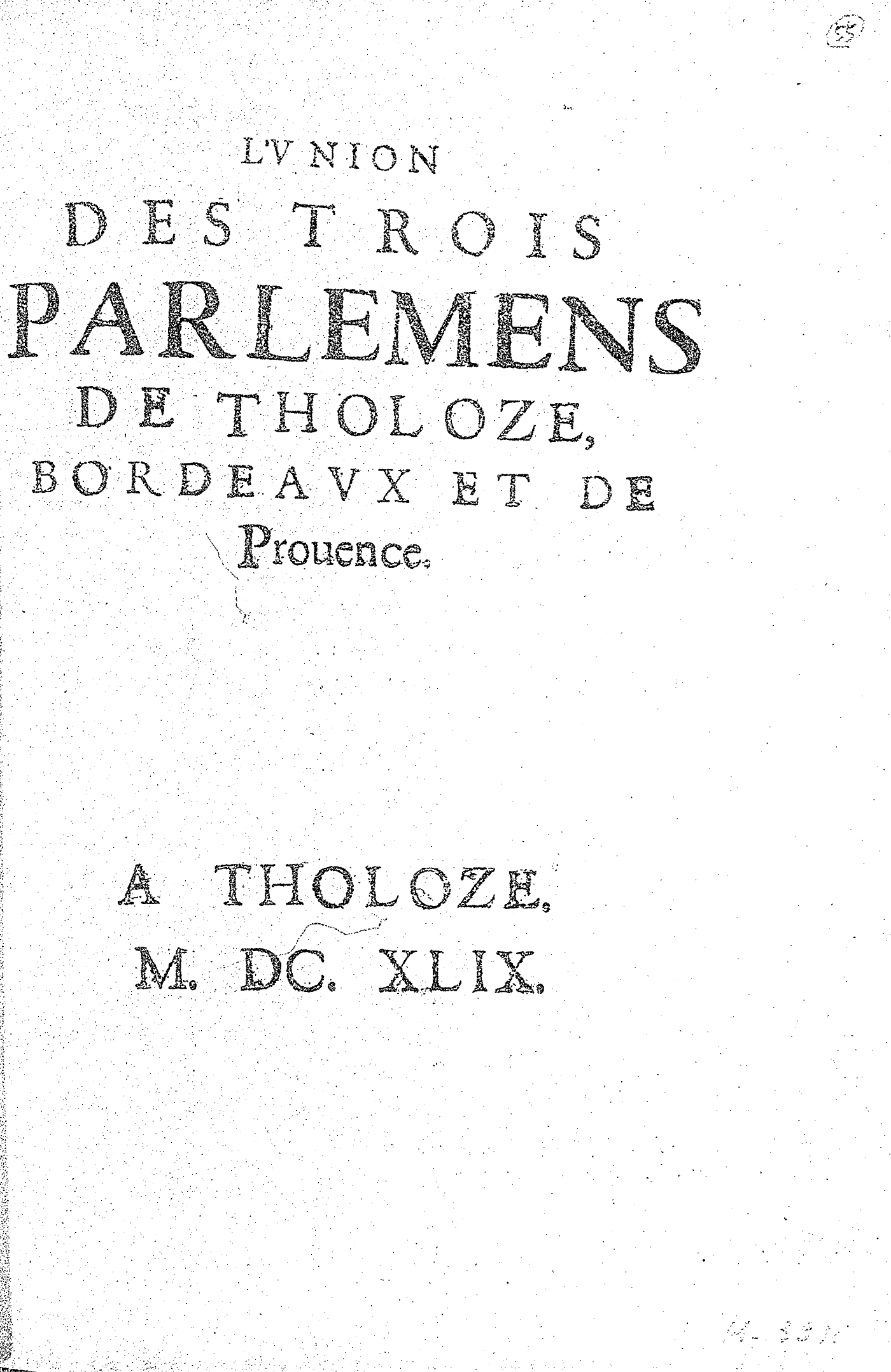 L’VNION DES TROIS PARLEMENS DE THOLOZE, BORDEAVX ET DE Prouence.