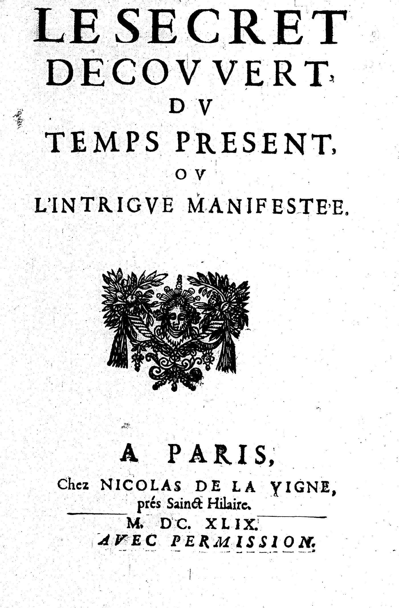 LE SECRET DECOVVERT, DV TEMPS PRESENT, OV L’INTRIGVE MANIFESTÉE.