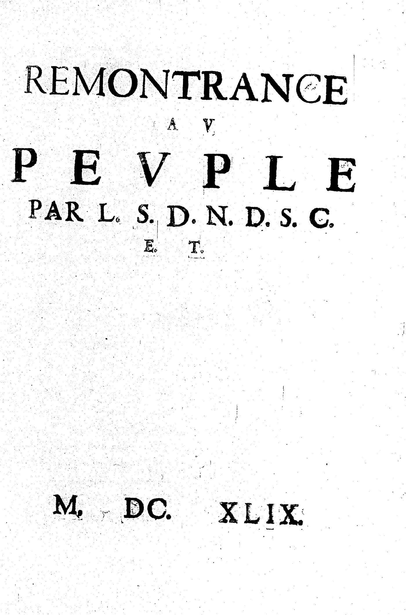 REMONTRANCE AV PEVPLE PAR L. S. D. N. D. S. C. E. T.