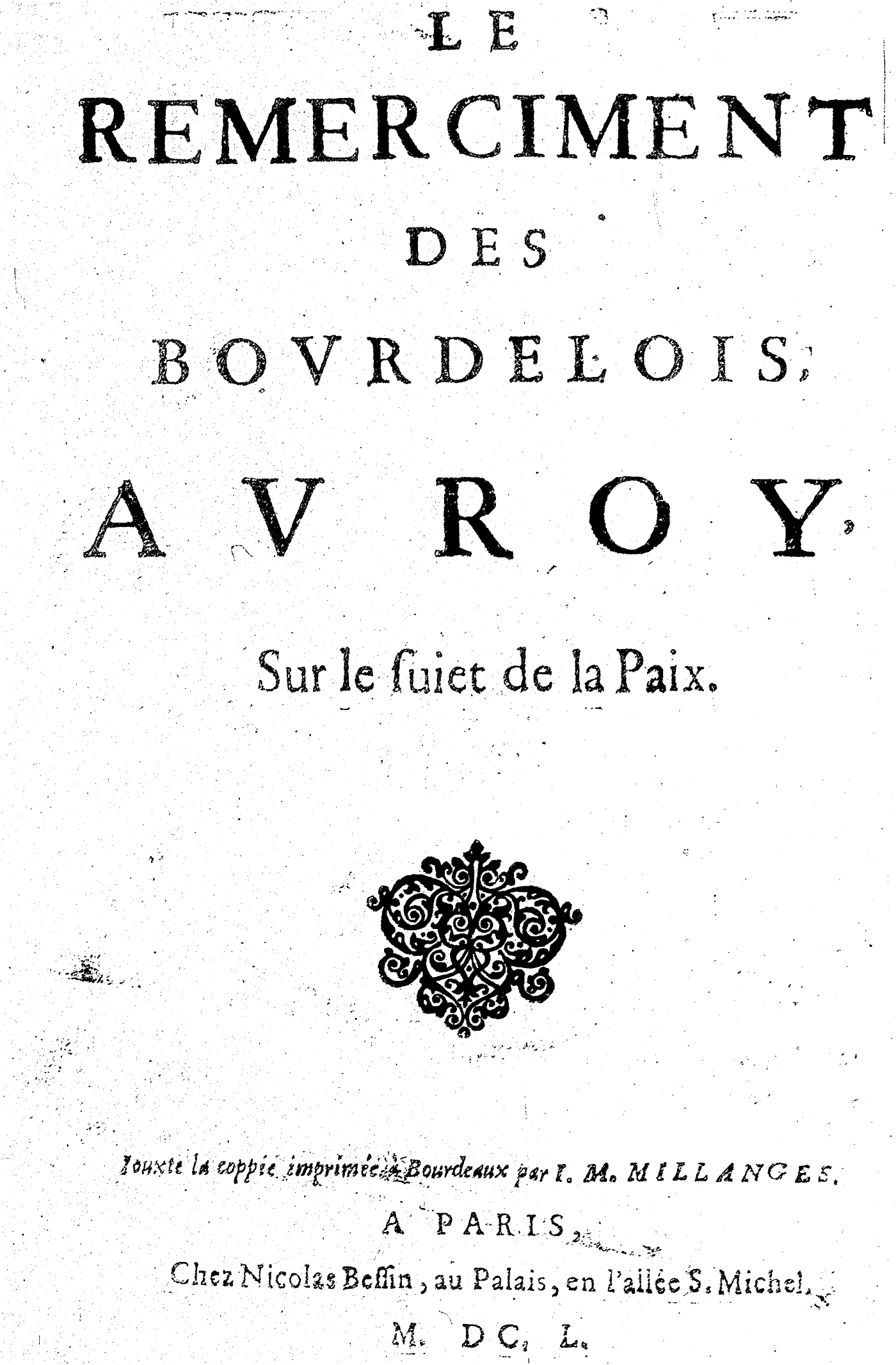 LE REMERCIMENT DES BOVRDELOIS, AV ROY, Sur le suiet de la Paix.