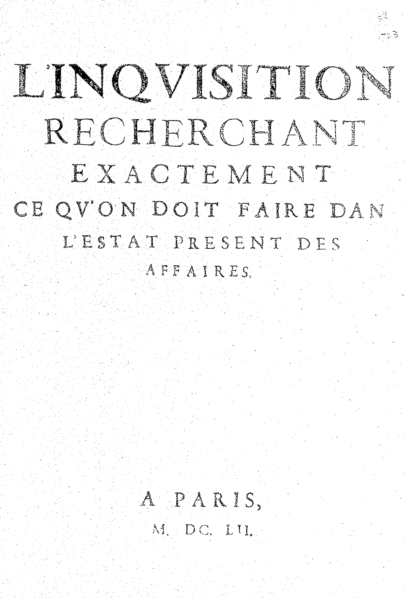 L’INQVISITION RECHERCHANT EXACTEMENT CE QV’ON DOIT FAIRE DAN L’ESTAT PRESENT DES AFFAIRES.
