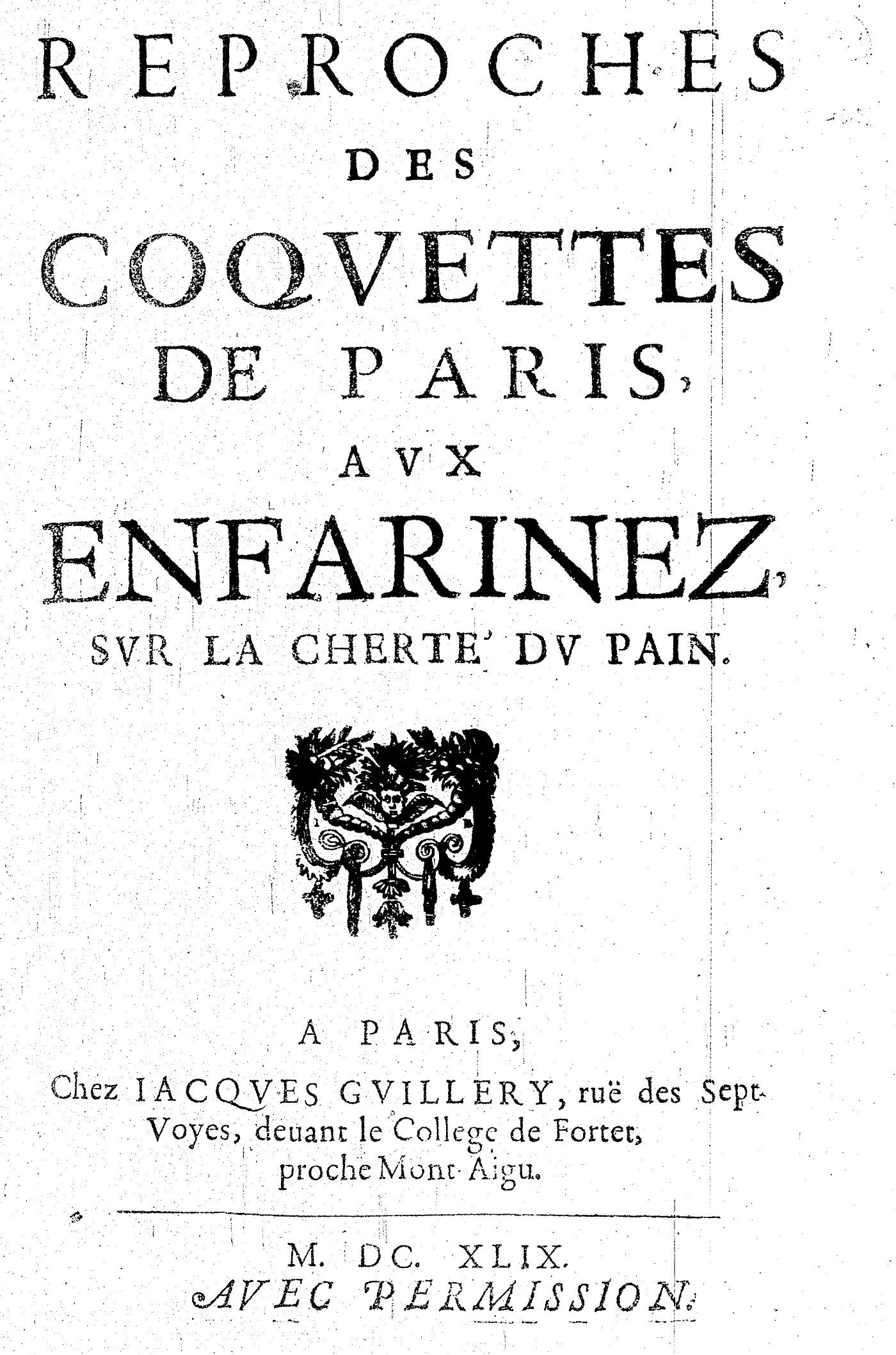 REPROCHES DES COQVETTES DE PARIS, AVX ENFARINEZ, SVR LA CHERTÉ DV PAIN.